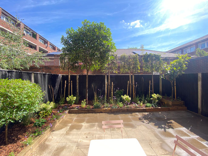 This was an unusual garden situated at the ground floor of a tower block of flats near Hackney Downs Station, in London. The garden and the back of the property was overlooked by a housing development directly in front of the garden and there was no side access. It had a neglected patio and a decaying shed and lacklustre garden. The client wanted a colourful low maintenance garden in a contemporary cottage style, that provided colour and interest throughout the year and crucially created privacy from the back of the property.