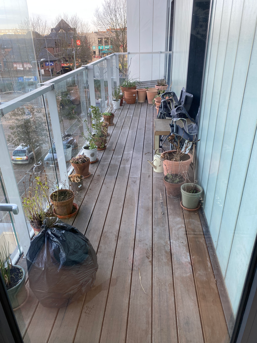 Balcony gardens are ever more a common occurrence especially to my generation, but that doesn't mean they can't be turned into valuable space for yourself and to wildlife. Far too often I see rows and rows of balconies bedecking London's high-rises with absolutely no plants, not even a leaf, or at the very least a rather sickly and neglected looking shrub. This long but rather narrow balcony was very tired, and was in desperate need of sprucing up. Good quality terracotta pots were added - never use plastic this heats up the roots in the soil causing a plant's stunted growth or death. Hardy, colourful and low maintenance perennials and grasses were added along with local wood mulch to mitigate rapid drying of the soil (a common theme on sunny balconies with glass fronts). A bespoke bench was created using a 200 year old Sessile Oak tree that blew down in a storm in 2019 near Sedbergh, with a Cumbrian blacksmith creating the metal legs. the colouring of the oak subtly echos that of the terracotta whilst also softening the mass of modern metal and glass cladding the building and the balcony. I will be adding more pictures during the summer when the plants begin to grow and flower, but I hope this proves that balconies can be crucial spaces not only for wildlife but also for yourselves in this busy and hectic world of ours.